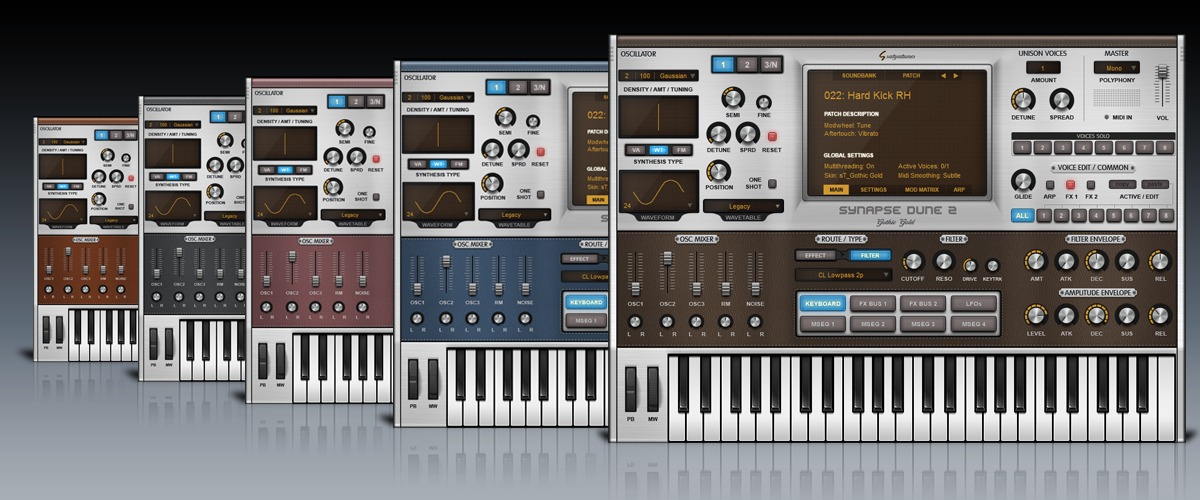 امروزه انواع مختلف سینتی سایزرهای آنالوگ به صورت یک پلاگین کامپیوتری عرضه میشوند .Synapse Dune2 نیز یکی از همین سینتی سایزرها می باشد.